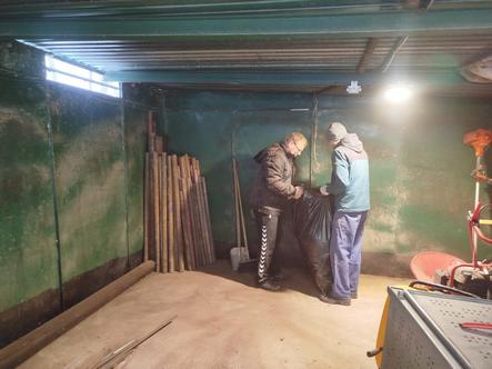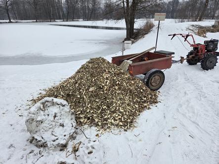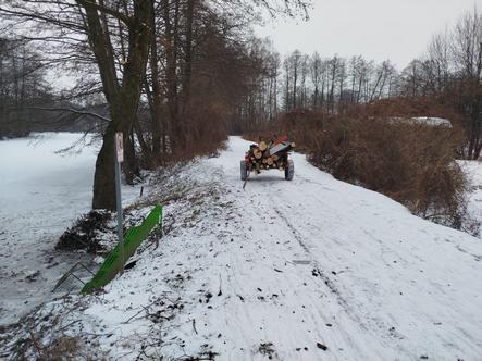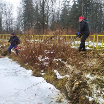 Počasí přálo, sluníčko svítilo, cesta byla sjízdná a hladiny rybníků byly dostatečně zamrzlé. Ideální podmínky k odstranění náletových dřevin na březích. Radim Landecki se ujal této pitvorné práce s velkou vehemencí a systematicky metr po metru eliminoval budoucí možné problémy při vývratech stromů. Nejdříve prořezal, pak odtransportoval. A furt dokola... Ovšem objevila se spása v podobě Radka Labaje. Ve dvou se to lépe táhne. A tak tito obětaví pánové na střídačku makali a makali. Poté se přesunuli do hospodářského zázemí a chytili se úklidu. A že se za ten rok pořádne nabordelilo jak v garáži, kolovně tak i ve skladu. Bylo toho fest. Radime i Radku děkujeme!
