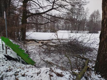 Do třetice tu máme opět popadané stromy, které představují nebezpečné překážky pro korzující návštěvníky této neskutečně půvabné přírodní lokality, kterou bezesporu střítežské rybníky jsou. Porvat se s tím přispěchal se svou věrnou Stihlkou opět Radim Landecki doprovázen parťákem Jarkem Maroszem. Radim mistrovsky kmeny naporcoval a svojím gryfem si tak zaslouží titul Holzmaster! Jarek s brigádníkem provedl transfer matrošu, aby bylo všechno cajk! Dikes pánové!
