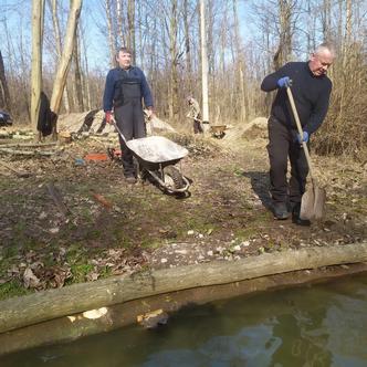 To ve Stříteži se opět blýskl Radim Landecki s Peťou Dulawou a Jarkem Maroszem. Vzali to komplexně. Pokračovali v nekonečné prořezávce. Povedlo se jim díky vynikající spolupráci s obcí zapůjčit štěpkovač a horu větví nádherně zdrtili. Štěpku použijí na zasypání lovících míst. To se to bude rybolovit pohodově i v dešti! Žádné bahno, jen pohodlíčko a vůně dřeva...Ááááách relááááx! Helfovali jim brigádníci Reno Kobielusz nebo Tonda Przeczek. Udělal se generální úklid v hospodářské budě. Speciální poděkování patří Radimovi, neb prakticky celou zimu, každý víkend, organizuje a technicky zajišťuje brigády pro zájemce o odpracování povinnosti. Ještě jednou všem obrovský dík!