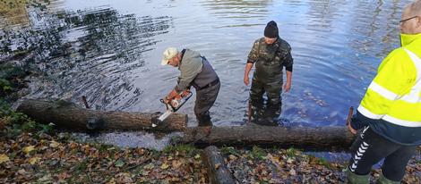 Pro přímý útok na náletové dřeviny se rozhodla jednotka specialistů, které velí Mirek Sikora a tvoří ji Mirek Malysz, Jarek Petros, Radim Sikora a Vojta Sikora. Takticky odstranili z břehů největší nádrže v okolí nepřizpůsobivé porosty. Dále pak udělali krátký proces s mřížemi na výpustném zařízení. Teď už jen tak nepůjdou vyrvat. A totálně eliminovali chátrající pozůstatky konstrukcí, které nemají ve vodním světě co dělat. Celé jednotce "Na zdar"! Zdar! A děkujeme pánové, že jste věnovali svůj víkend pro dobrou věc.